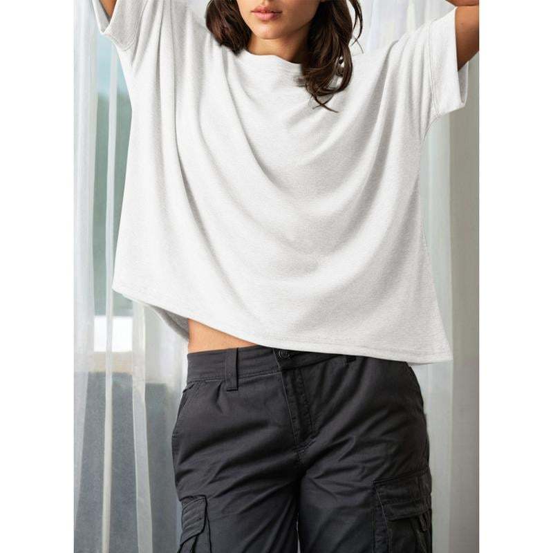 【Match】: This simple basic t-shirt can be paired perfectly with jeans, shorts, leggings, pants, or skirts for a concise and fashionable look. It can also be layered under a jacket in winter for added versatility