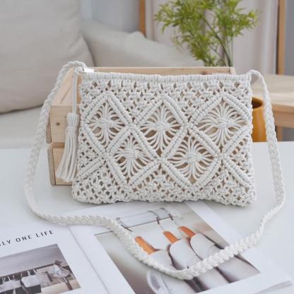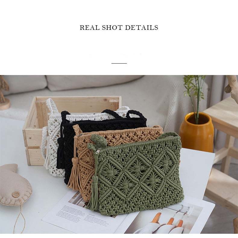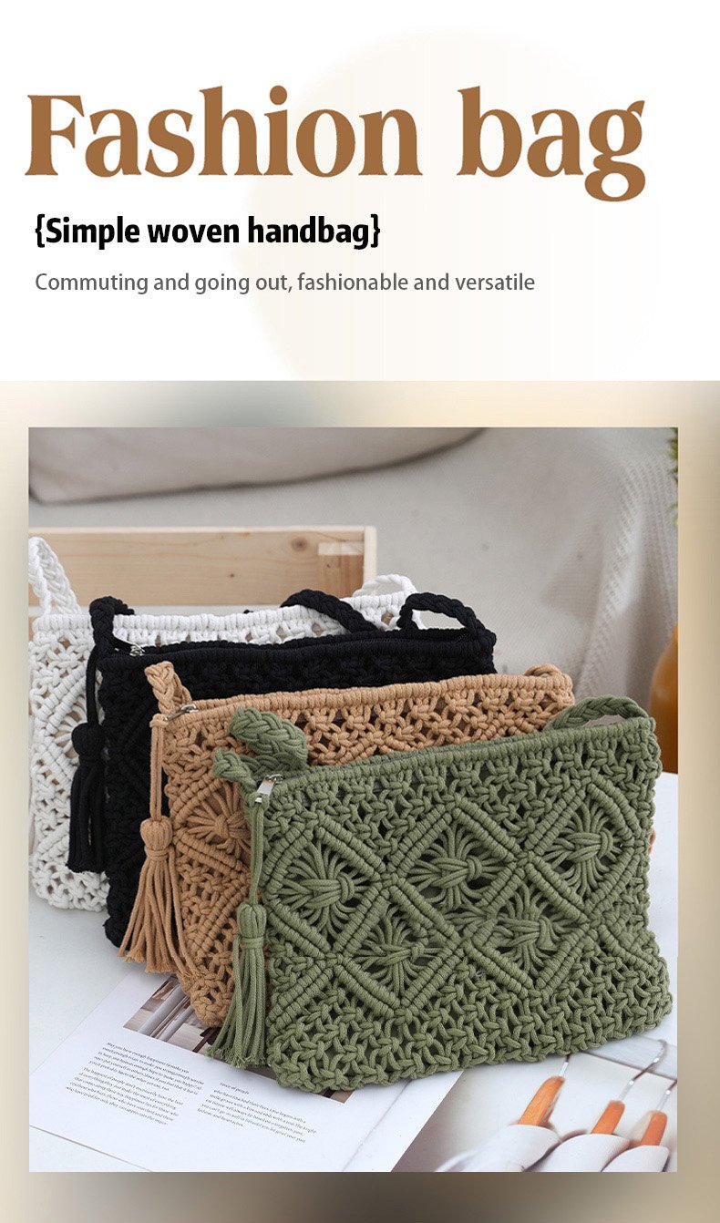 🏆Flash Sale⚡ 50K+ SOLD! Almost Gone-💥Minimalist Tassel Women's Clutch – Retro Cotton Rope Woven Bag, Summer Vacation Boho Beach Purse