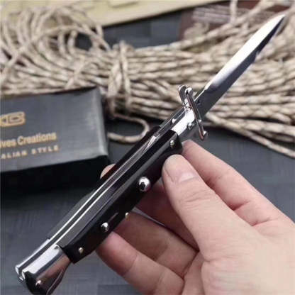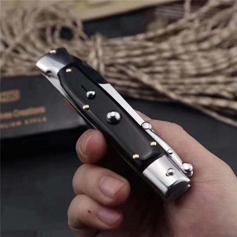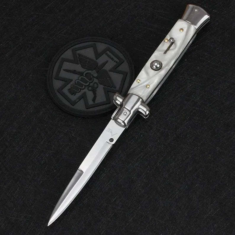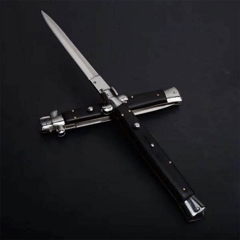 Beautiful Pure Handmade Old School Italian Stiletto Pocket Knife with stainless steel bolsters, a single edged bayonet style blade.